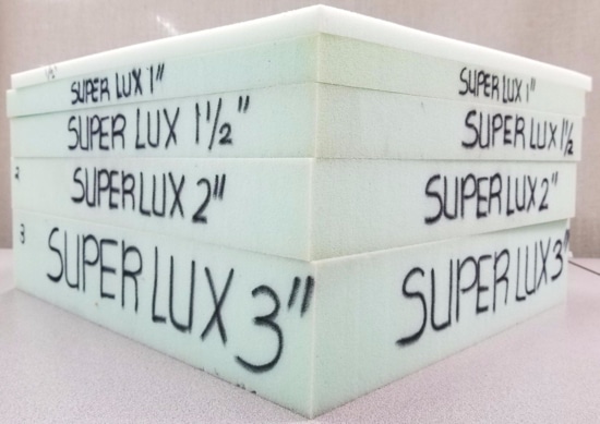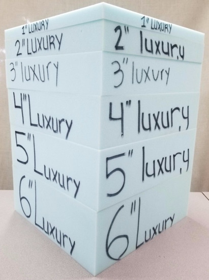 Our luxury firm foam is a high-density foam recommended for cars, seat pads, seat cushions, and massage tables 4″ thick or thinner. If you are looking for support and durability, then this foam is for you! This kind of foam has rubber-based characteristics. This means it will maintain its original shape and density for many years with a high degree of support.