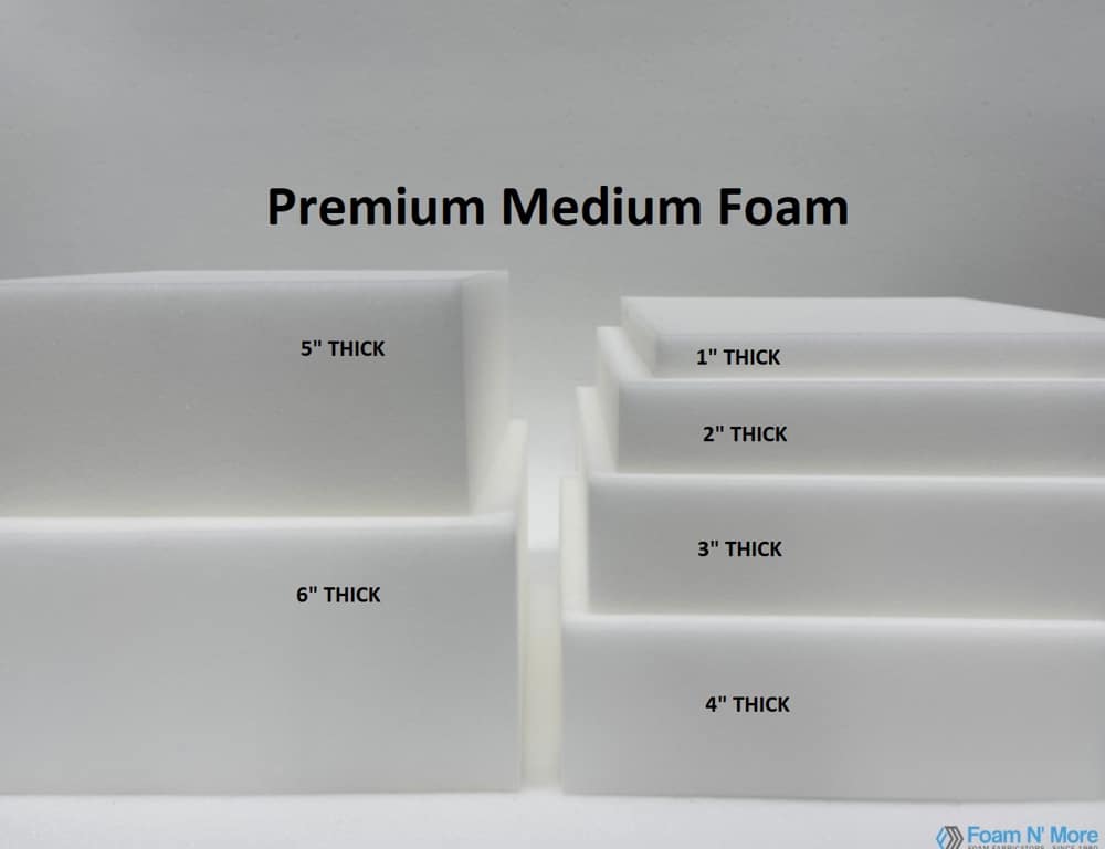 Standard medium foam is a medium-density foam used for upholstering headboards, baby mattresses, dog or cat beds, temporary sleeping foam toppers packaging protection, shipping or moving, and any other occasional mattresses or cushions used.