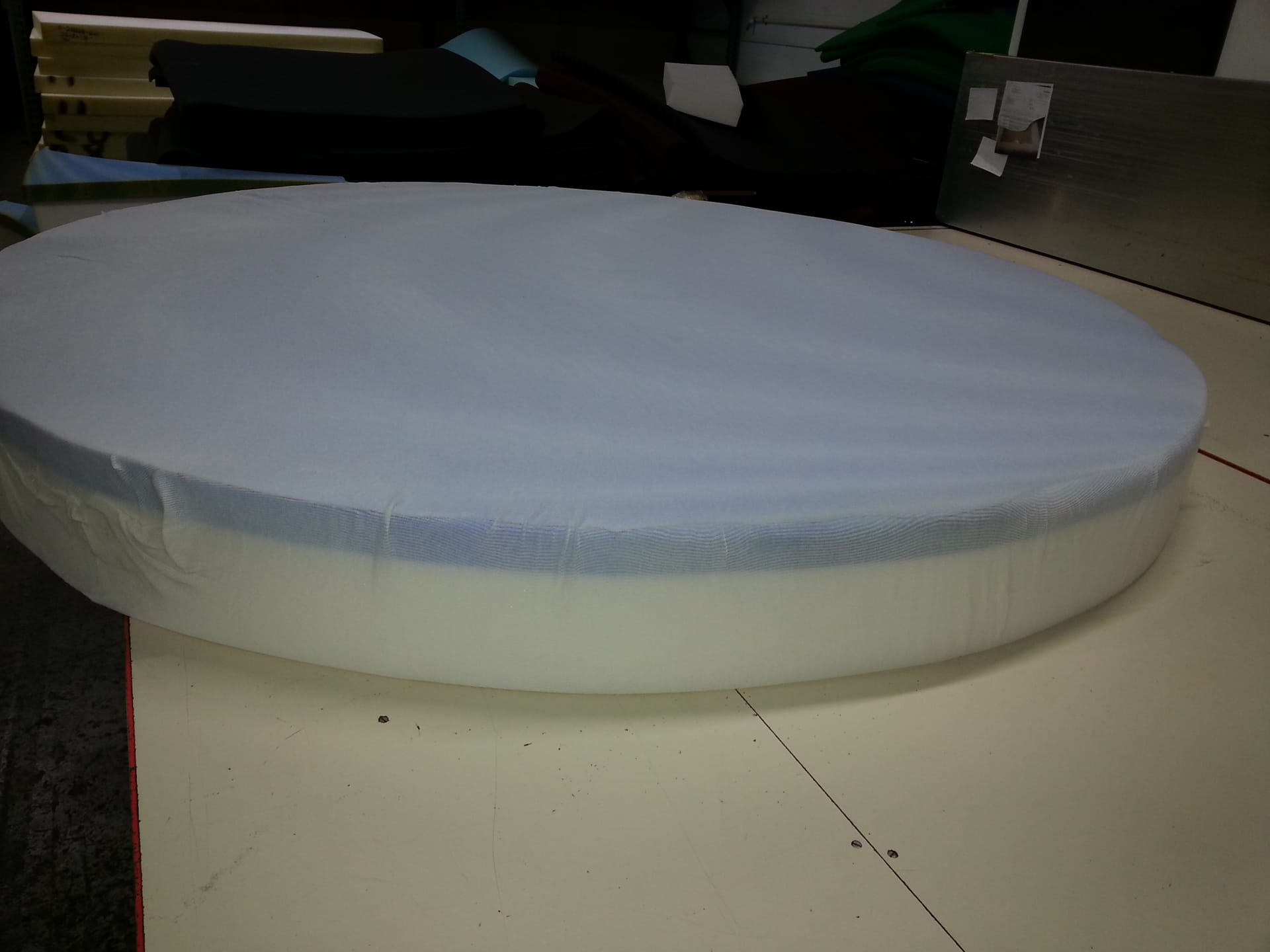 Please Note: To cut the circle we do use a marker to trace and cut to proper shape and size. The sharpie marker may show after cutting to shape. This type of marking has no effect on the foam and is not toxic. We would not be about to credit or refund this type of issue. It is best to cover the foam if you do not wish to see this mark.