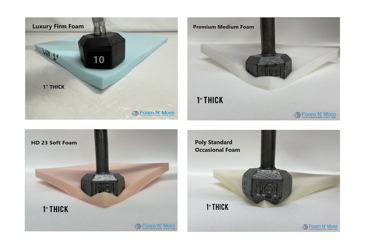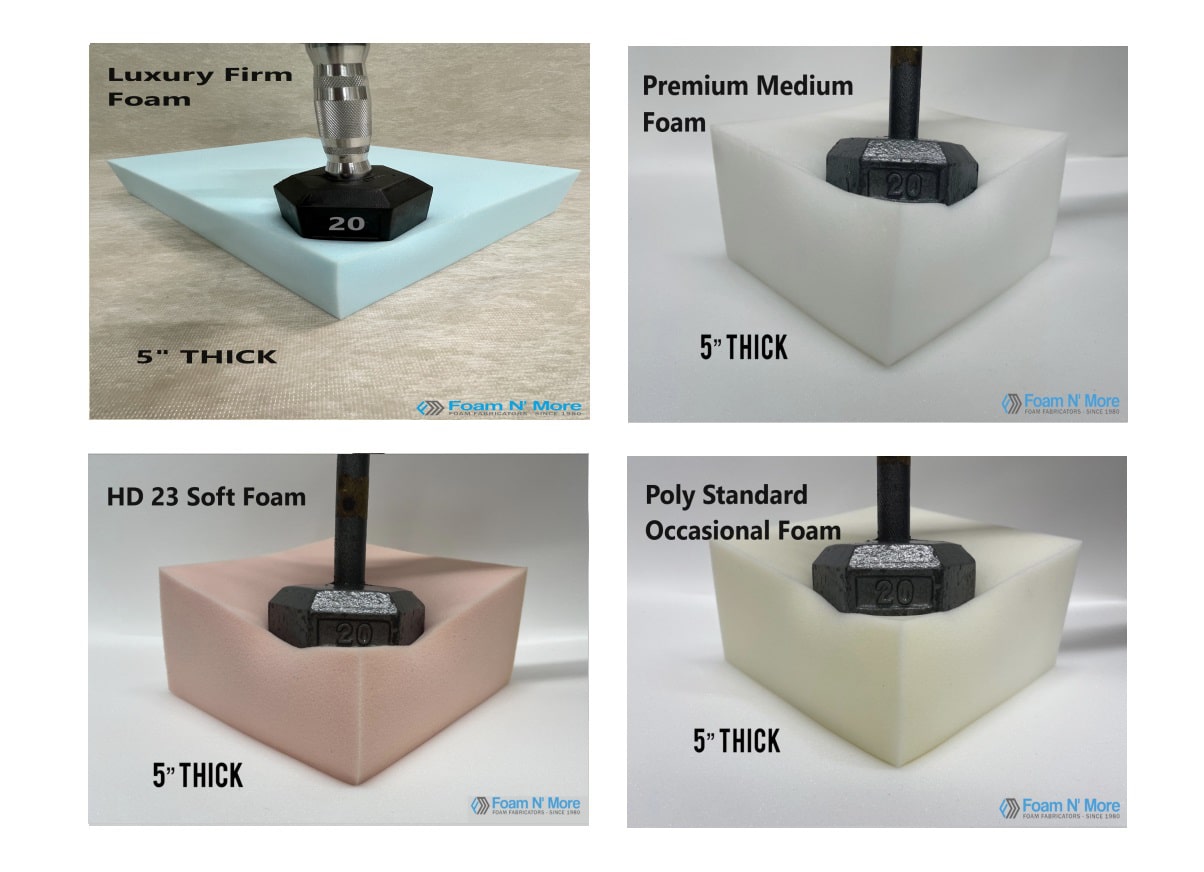 Luxury Firm Foam, Premium Medium Foam, HD23 Medium/Soft Foam, Standard Occasional Foam, Plush Soft Occasional Foam