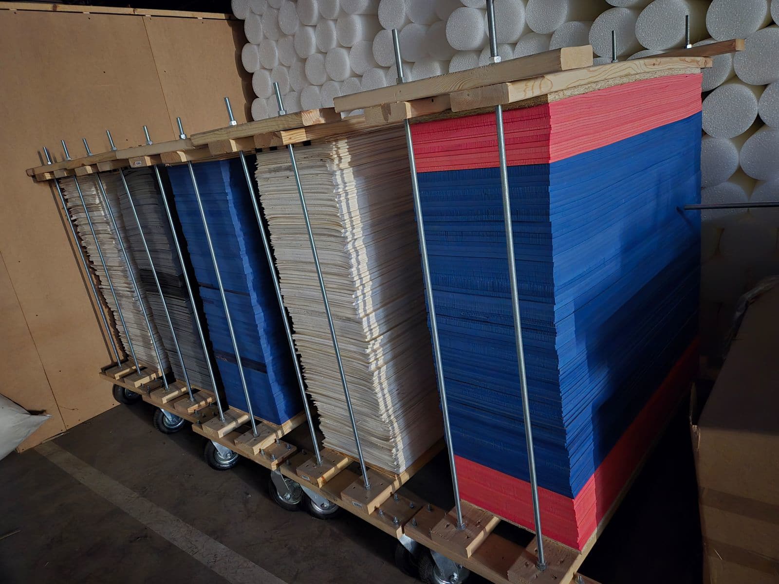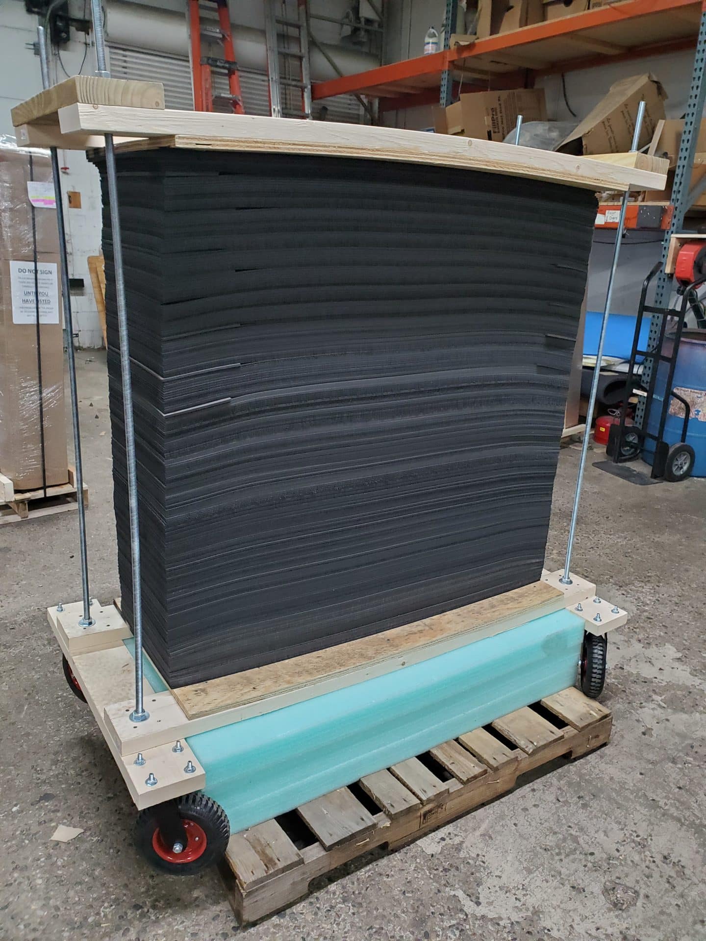 Taking off the wheels are an option for the same cost because we must add horizontal support at the bottom to keep the minicell foam from bending.