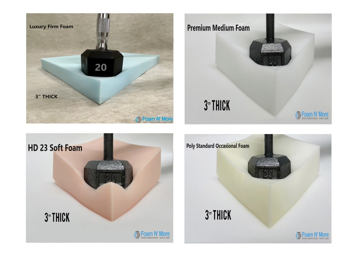 Luxury Firm Foam, Premium Medium Foam, HD23 Medium/Soft Foam, Standard Occasional Foam, Plush Soft Occasional Foam