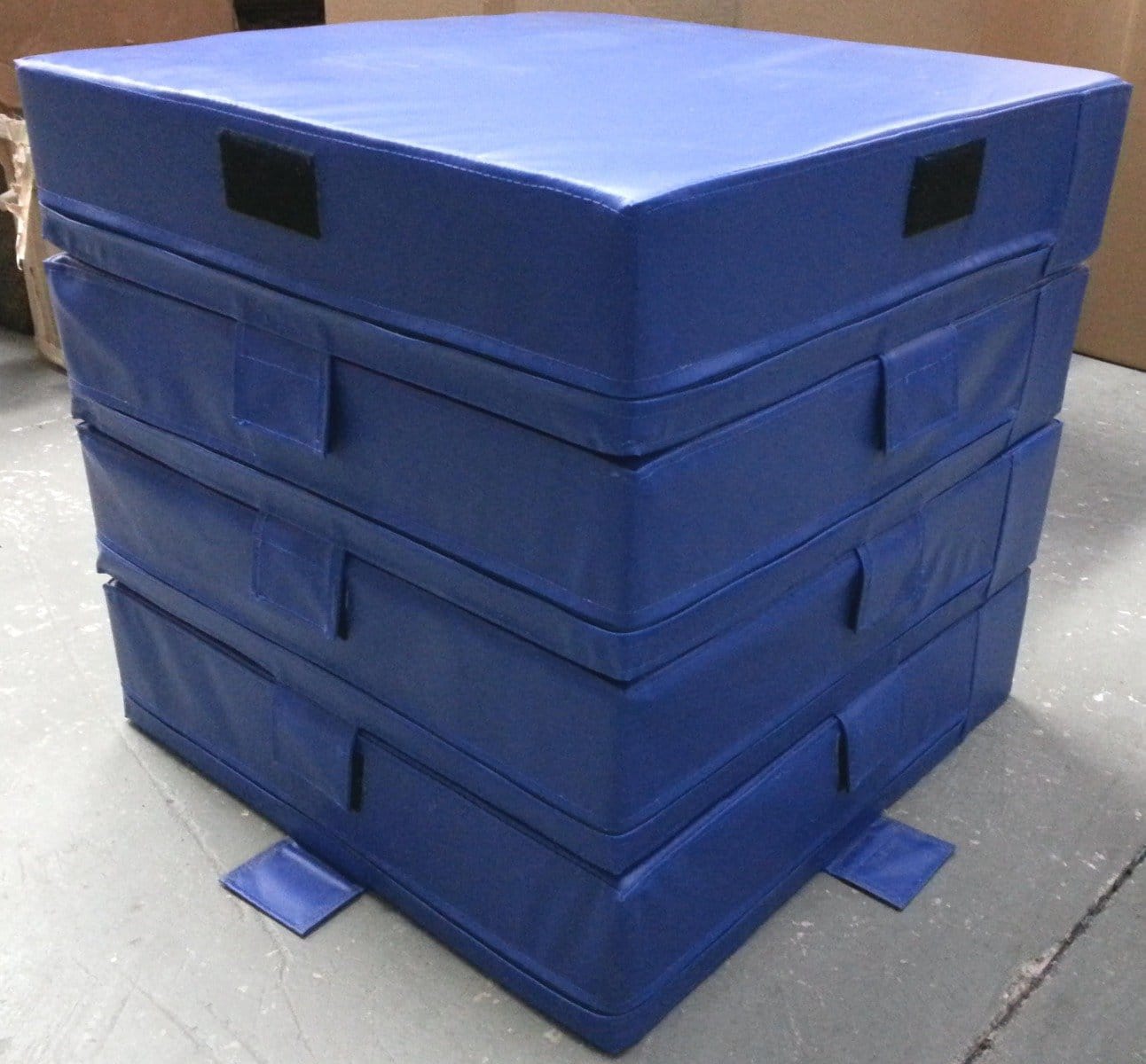 Foam Plyo Boxes are a must-have training tool for explosive jump and speed training. Athletes of all levels use these boxes for forward, lateral, and other plyometric jumping drills. Increase not only in your vertical jumping ability, but also drastically increase foot speed, cardiovascular endurance, overall leg strength and health, and “out of the blocks” explosion. The number of exercises you can perform are endless and only limited by your creativity. Professional, college, high school and even grade school athletes can improve performance and increase speed agility and all around fitness levels with plyometric training.This 3-piece set is perfect for schools, home gyms and personal trainers that want a compact set of high quality plyo boxes. Velcro tabs to secure boxes together and compression vents for air release.