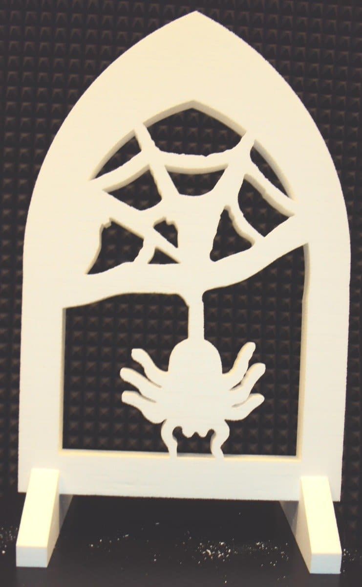 Lawn sign features and each tombstone have different scary futures; Witch, Spider, Ghost, Bat, Cat, and Pumpkin.
