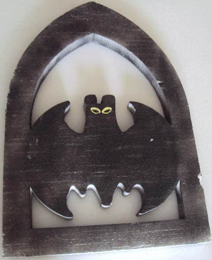 Tombstone in the size 23″ Wide x 35” High x 2” Thick with a scary image background inside the tombstone and comes with stains extra support and to hold in place.