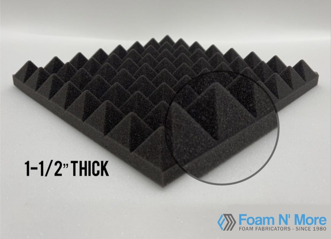 1.5” Thick Acoustic Pyramid foam is exclusive unique thickness that no one on the acoustic market has in this shape and is a cheaper alternative. Perfect for echo or reverberation and acoustically sound deadening rooms, with a lot of bouncing sound waves.