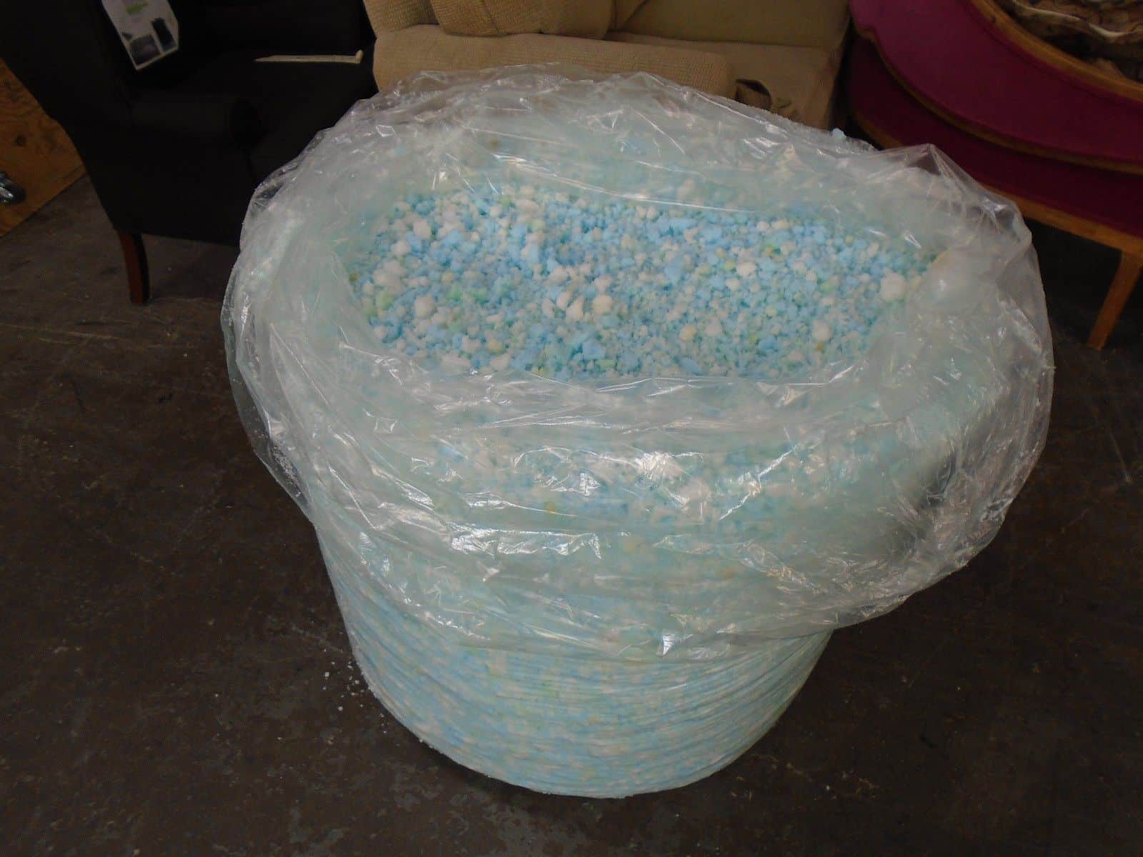 These shredded foams are used for sofa back cushions, throw pillows, dog beds, wicker chair padding, and miscellaneous cushions.