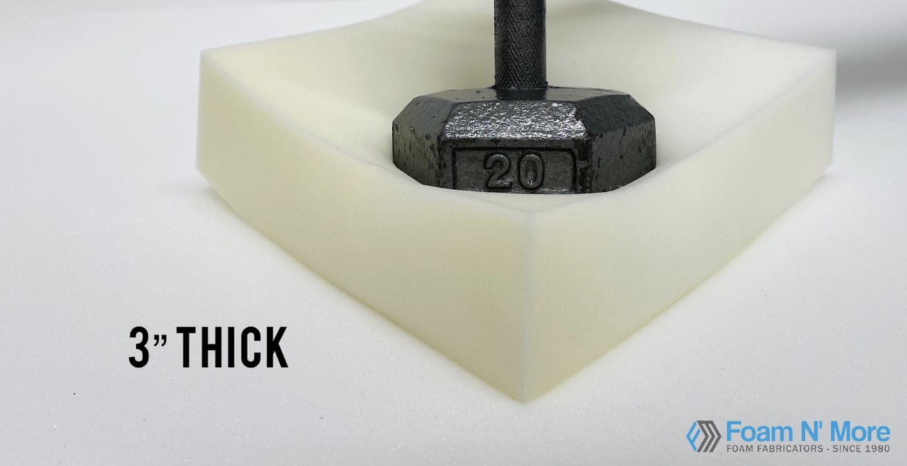 ILD/IFD Example: when using a block of Luxury Firm High Density foam 12″ x 12″ x 12″ the ILD for that particular foam is 50. If you put an item that exceeds 50 lbs onto the foam then the block of foam will collapse and compress to the bottom.
