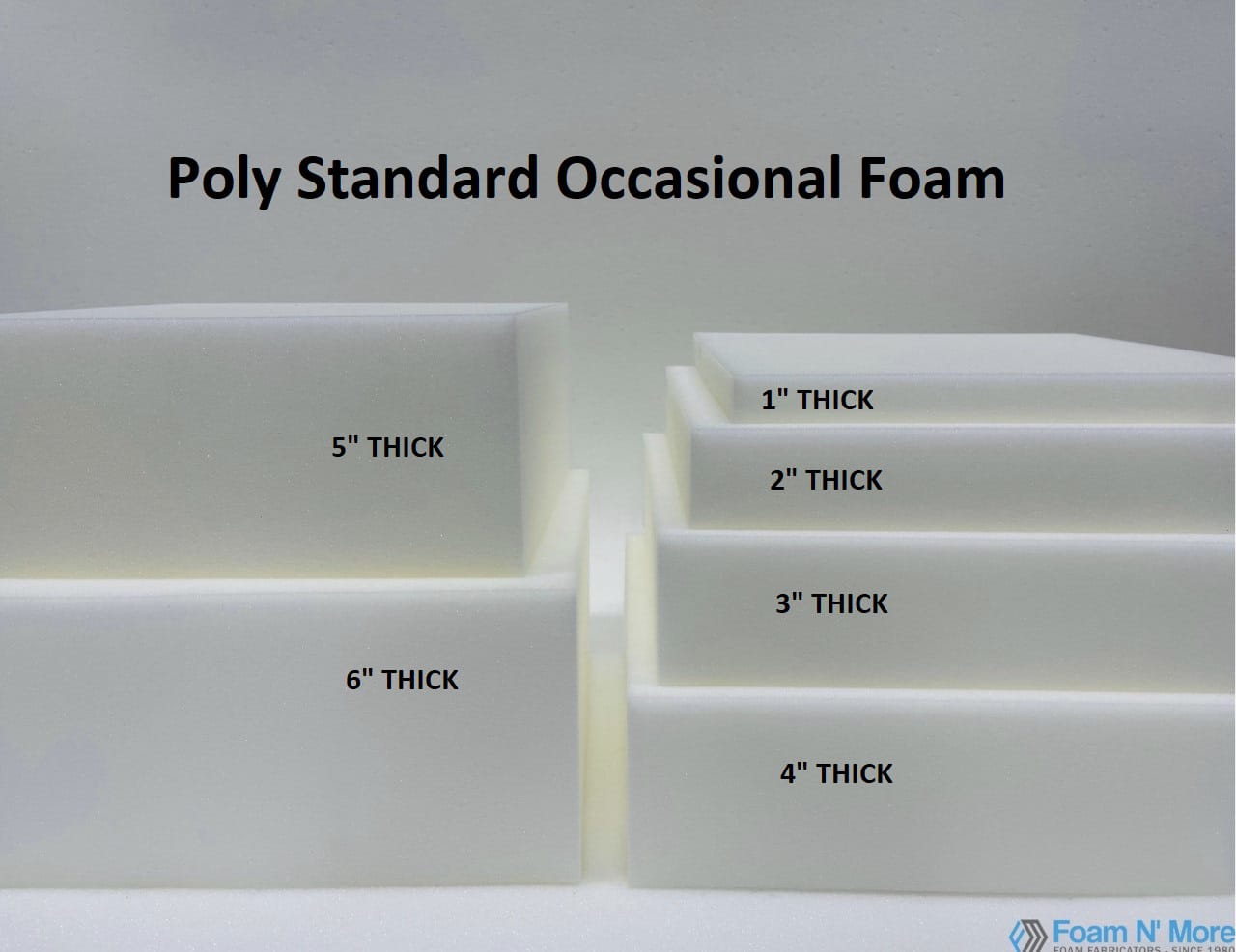 Our Standard Medium foam otherwise known as Poly foam is a medium density standard foam that is meant more so for temporary uses. This foam is not high density, nor is it rubber based so it will not last any longer than 1-3 years with daily use. This foam type is usually used for arts and crafts, camping pads, temporary guest beds, fold out beds, upholstered headboards and footboards, and pet beds.