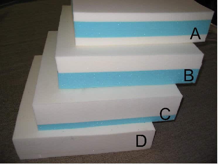 1″ of Visco Elastic Memory Foam on top and bottom with 3″ of Lux Foam in the middle.